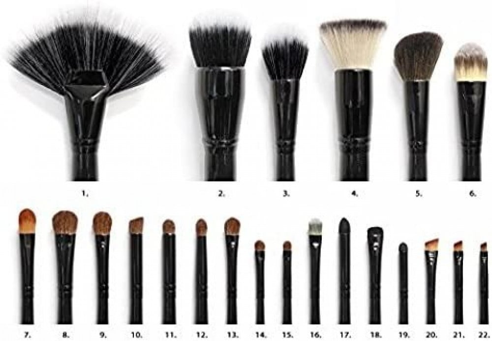 تأتي هذه المجموعة في 22 فرشاة رائعة، بالاضافة إلى حافظة جلدية باللون الاسود لتضمن لك تخزين أمثل للفرش.